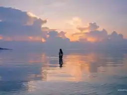 📸 Just stand there and you'll have a super chill photo! It feels like you're walking in the middle of the vast ocean, surrounded by sunlight shining through the clouds, reflecting on the calm water surface - an unforgettable experience and extremely worth trying! 💫