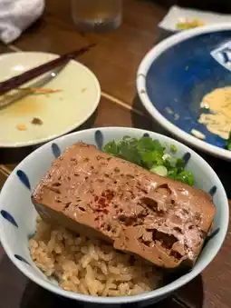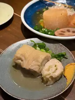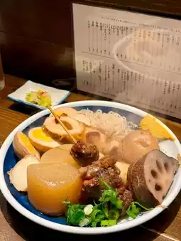 What makes this shop stand out is its rich selection of over twenty types of oden. Unlike typical places, its broth has a darker color and features a uniquely sweet and salty Japanese flavor profile. Though the taste is strong, it leaves a lasting impression. Must-try items include the beef tendon and the signature tofu rice: the beef tendon is tender and flavorful, soaked in a rich sauce, while the tofu rice can be enhanced by asking the staff to add oden broth, instantly transforming it into a sweet, warming soup rice—a true delight for the taste buds.