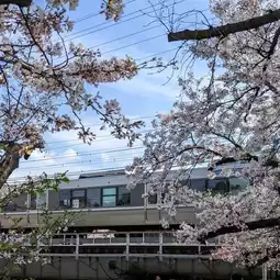 [Trains and cherry blossoms at Shukugawa] Shukugawa Station is recommended by locals too!