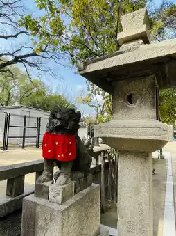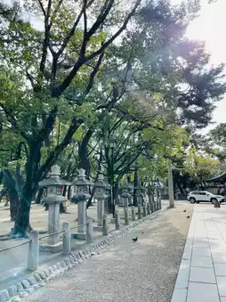 It is located just past the Omote Daimon Gate (commonly known as the Akamon Gate) on the way to Nishinomiya Shrine.