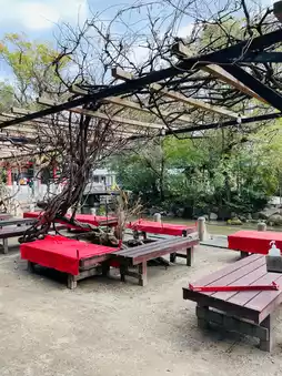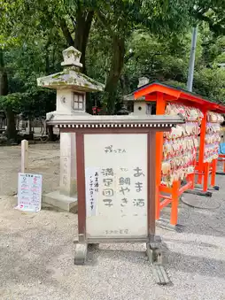 This teahouse is located in the grounds of Nishinomiya Shrine, which is famous nationwide for the lucky man selection. It is famous for its non-alcoholic sweet sake, but I was a little hungry so I had their specialty mitarashi dango. The small taiyaki was also just the right size. They were both reasonably priced at 300 yen each, including hot tea. Even so, the prices have increased.