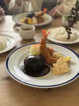 The hamburger steak and fried shrimp set I had at Hut June Berry was a hearty and satisfying meal. The juicy hamburger steak was tender and perfectly paired with the demi-glace sauce. The crispy fried shrimp was firm and perfectly paired with the tartar sauce. The accompanying salad and rice were well-balanced and visually stunning. By the time I finished, my stomach and heart were both satisfied, making for a truly satisfying lunch.