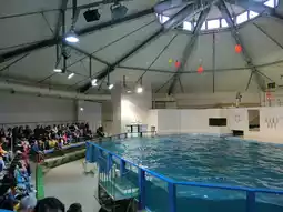 This red-brick-style castle is actually an aquarium showcasing a variety of marine life. In addition to the aquarium, the park features dolphin and sea lion shows, as well as the most popular attraction—the adorable penguin parade. Watching the chubby penguins waddle and sway as they walk by, visitors can't stop snapping photos and videos with their phones and cameras! The penguins also respond to the trainers' commands, making movements, sounds, and even interacting with children. It's absolutely delightful!