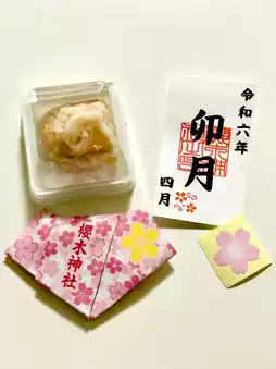 A set of seasonal sweets, goshuin, and fortune-telling slips.
