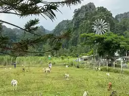 This tourist village is nestled amidst a long line of limestone mountains, offering stunning views. There's also a bat cave, offering a peaceful atmosphere. There's also a cafe, waterfall, activities, and plenty of accommodations. 🌿🌳