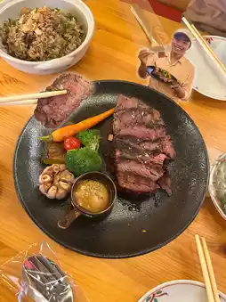 🍺 Finally, I had the "1 Liter Asahi," a cold glass of soft foam. It pairs perfectly with the beef, and it's the ultimate indulgence!