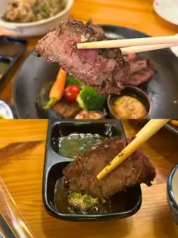 🤤 The aroma of grilled meat wafted through my nose, so I had to turn in without hesitation! The restaurant has two zones: the new one has a cool, slightly loft-style vibe with live music, and the other zone we were in is a Japanese-style area with a chill atmosphere, perfect for a relaxing, special meal.