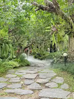- A forest-inspired cafe featuring a waterfall replica, lotus pond (Victoria water lilies), tropical plants, and a "wooden dome" area that feels like stepping into an enchanted forest.