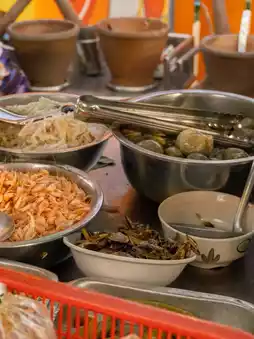 ■ One of the standout restaurants offers authentic Isan-style chili paste dishes. The mortars and pestles are lined up, each using fresh ingredients for a unique flavor. The variety of dishes is a delight to the eyes. There are many other great restaurants in this area, some of which can only be found in Nong Khai…