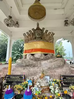 3. Wat Phra That Bang Phuan, home of Pu Mucalinda Nagaraj. 29 relics of the Phra That Hua Nao were enshrined at Phra That Bang Phuan, also known as Phu Khao Luang, and "Sa Mucalinda," or "Sara Phaya Nak." Later, King Chaiyachettha commissioned the construction of a nine-headed Naga-shaped Buddha image nearby. 🙏🐉 #PhraThatBangPuan #MucalindaNagaraj #MuteluParaRich #nongkhaitrip