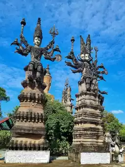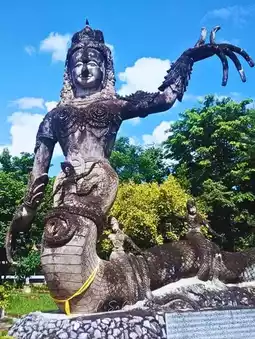 This unseen attraction houses a multitude of colossal concrete sculptures, seamlessly blending Buddhist and Hindu beliefs. Experience and be amazed by the enormous statues, each with its own fascinating story. Each statue was created with the imagination and religious inspiration of its founder, Grandfather Boonlue Sureerat. There are many interesting statues, including various postures of the Buddha, Bodhisattvas, and Hindu deities like Shiva, Vishnu, and Ganesha, towering throughout the area, making you feel like you're walking in the land of the gods.
