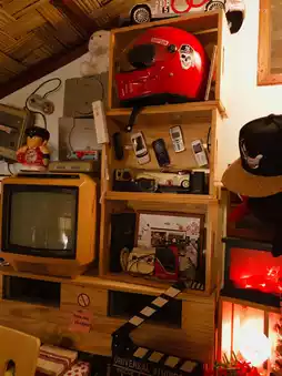 A chill riverside cafe on the Mekong River, reminiscent of "hanging at a friend's house" with a 90s-vintage vibe. 🎶 The interior is warmly decorated, and there are fun retro games to play. Plus, there's a cute promotion: buy 150 baht and get coins to play claw machines. 🧸✨