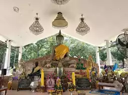 This ancient temple houses a Naga statue and replicas of important sites related to the Buddha, the most complete of which still exist. It also features the Mucalinda Pond (sacred pond) from which water is used in various important national ceremonies, such as the Phiphat Satya Water Ceremony. Women are prohibited from entering this pond; worship is permitted only from above.
