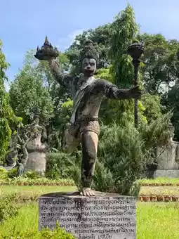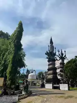 This complex is filled with over 200 large, unusual reinforced concrete statues, each towering and imposing. These statues were created out of the faith and belief of Grandfather Boonlue Sureerat, or Grandfather Lue, that all religions can coexist. He intended the Deva Park, or Sala Kaew Ku, also known locally as Wat Khaek, to represent a place of liberation from all defilements.