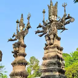 🥳 Come and experience the magnificence and wonder of Kaew Ku or Sala Kaew Ku in Nong Khai! This place is filled with over 200 giant stucco sculptures that perfectly blend various religious beliefs and philosophies, whether it's Buddha statues, Bodhisattvas, Hindu gods, or even stories from the Ramayana. Each piece has its own unique identity and interesting background stories, waiting for you to discover and capture the impressive images in this magical land.