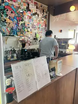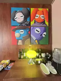 The interior is decorated in brown tones, contrasting with the bright colors of cute paintings. Taking pictures is very beautiful. It looks gimmicky. It is a small shop but there are many photo zones. In addition, there are also small games to play. Very fun
