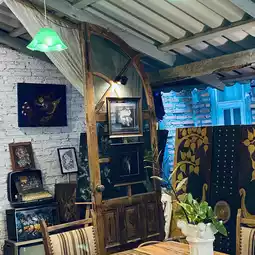 🪴The small cafe in front serves drip coffee, tea, and homemade pastries. There are simple wooden tables to sit and enjoy drinks with soft music. The atmosphere is warm like hanging out at a friend's house who is an artist. 🎨