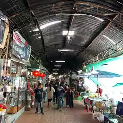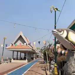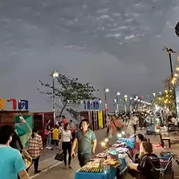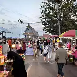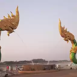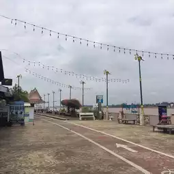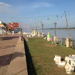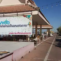 The walking path along the Mekong River (of) Walk along from Wat Chumchon Hai Sok. Walk along the east side, you will see an arch with stairs leading up to a high angle and a sign for Walking Street. On the right is a shop and Tha Sed Market. In the evening, there are restaurants selling Isaan and Thai food and food made from Mekong River fish. On the left is the Mekong River. There is an immigration checkpoint at the Mekong River port of Nong Khai Municipality. Walk further to the Red Naem Nuang shop. Continue to the Naga 2 water-spraying square. There is a market along the Mekong River selling clothes, food, papaya salad, and food made to order. Walk along to the Sig Sig market selling fashion, food, and an activity square, approximately 1-2 kilometers long.