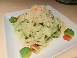 ➡️ Crab Avocado Salad - The crab meat is mixed in the salad dressing. It's a creamy salad dressing with a rich flavor. It has a refreshing sour taste so it doesn't feel greasy. The vegetables are fresh and crispy. Delicious.