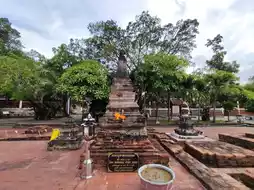 🎈Wat Chomphuwek, an ancient temple in Nonthaburi Province, was built during the reign of King Narai the Great during the Ayutthaya period, around 1682-1757, by Mon refugees from the Mon Kingdom. Situated on a high hill, the temple is peaceful, hence the name Wat Chomphuwiwek. Inside the temple is the old Ubosot, a Maha Udom-style Ubosot (ordination hall), with only one door. Inside, beautiful paintings by Nonthaburi artists from the mid-Ayutthaya period feature the image of the Earth Goddess squeezing her hair, considered the most beautiful in the world. Wat Chomphuwek also houses several other important landmarks, including the Mutao Chedi, the new Ubosot, the Phra Maha Chakkraphat Wihan, the Phra Phutthabat Wihan, and the Earth Goddess squeezing her hair. If you're visiting Nonthaburi Province, Visit an important ancient temple in Nonthaburi Province. See the old ubosot (ordination hall) at Wat Chomphuwek.