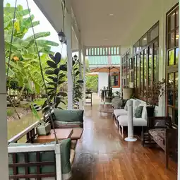 𓂃 A newly opened home cafe, this garden cafe offers a delightful atmosphere, surrounded by trees and flowers. The garden itself is truly a banana plantation, offering both indoor and outdoor seating. 🌳🪵