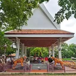 Pay homage to Luang Pho Suea at the Buddha statue at Cheing Tha – in front of the church