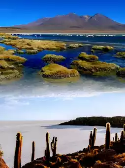 Besides the salt flat, there are many other unique natural landscapes around Uyuni. Volcanoes, geysers, hot springs, and colorful lakes complement each other. The Tunupa Volcano stands tall on the earth, with hot steam rising from its crater, as if it were the earth's breath. Geysers erupt regularly, sending huge columns of water into the sky with a deafening roar, showcasing the immense power of nature. Hot springs are the perfect place for weary travelers to relax, soaking in the warm water and admiring the surrounding scenery, washing away all fatigue. The colorful lakes, such as Laguna Colorada and Laguna Verde, are masterpieces of nature. Laguna Colorada gets its vibrant red color from the algae and microorganisms in the water, and the lake is also home to many flamingos, whose figures contrast with the red water, creating a picturesque scene.
