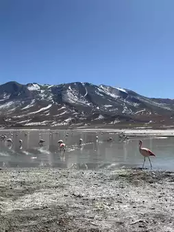 After finishing on the salts flats we drove through desert to reach the flamingo lakes. With so many flamingoes chilling in the water. We also saw foxes and other incredible South American animals.