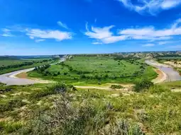 Scenic Beauty: Colorful badlands, winding rivers, and wide-open skies glow at sunrise and sunset.