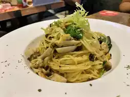 🍝Garlic, chili, herb, mushrooms, clams and spaghetti