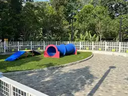 The pet park is located at the rear of the children's playground, the entrance is on the outskirts of the park, facilities I donate a hole, a footbridge, and a water dispenser for dogs.