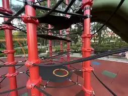 The playground features a set of components suitable for children aged 2 to 5 years, including slides, game boards, and children aged 5 to 12 years with access to rope nets, climbing frames, large slides and a rotating tower. The integrated combination of climbing frame and slide is novel in design. If you want to slide, you have to use your brain and muscle