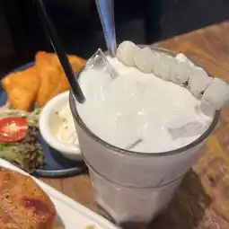 Add a special drink with milk cover 🥤 ( milk cover purple taro ball 🍡)