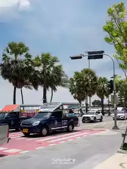 #Pattaya Travel North Pattaya Beach Road is a place full of life and peace at the same time. With a wide road, you can walk or sit and relax along the road comfortably. The trees along the way make you feel refreshed and help block the sun during the day. The fresh air with the sea breeze helps create a relaxing atmosphere throughout the walk.