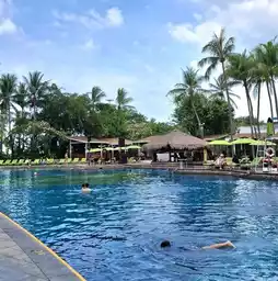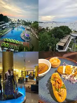 🏖🏖The hotel is located on the road along Pattaya Beach, North Pattaya. You can walk out to play on the beach. Or if you want to play in the water, the hotel has a large swimming pool divided into several zones: a children's zone, an adult zone. There is also water sports equipment. You can climb the cliff by the pool or lie down and relax by the pool. There are colorful hammocks around the pool.