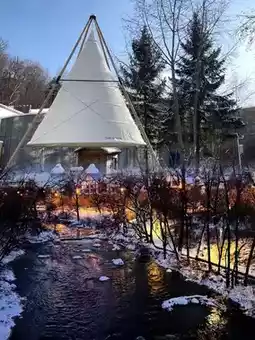 There is a hot spring pool. You can soak in the mist at night. It's really dreamy. You can also play in the snow on the roof. Children and couples will not be bored. There is a giant screen projection, and watching movies is super cool.