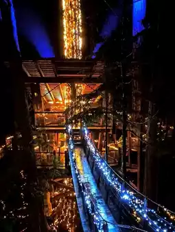 The landscape changes with the seasons: misty mornings in spring, golden leaves in autumn, and light-strewn paths in winter. Whether you are sipping hot chocolate in the winter café or catching shafts of sunlight through the canopy, it always feels a little bit magical.