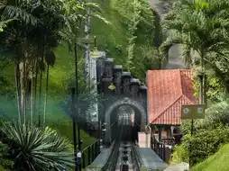 Stepping onto the platform, you're enveloped by the sights and sounds of the surrounding rainforest, a verdant oasis teeming with life and vitality. The rhythmic chugging of the train engine adds to the excitement, signaling the beginning of an unforgettable ascent to Penang Hill's summit.