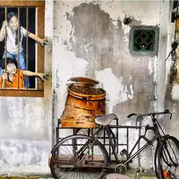 3. Penang Street Art: Snap a picture with the famous murals, such as "Kids on Bicycle" or "Brother and Sister on a Swing."