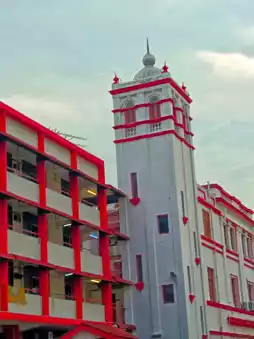 This historic building blends colonial and local styles, with striking white and red accents. It is still in use today as a fire station, and features exhibits detailing the station's history and artifacts.