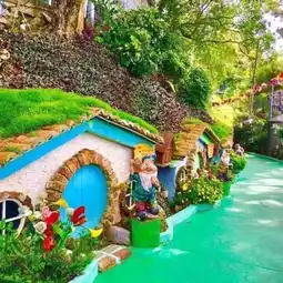 There are monkeys galore along the way and there are also houses of worship like a mosque and a Hindu temple. .