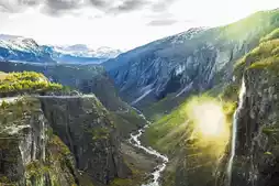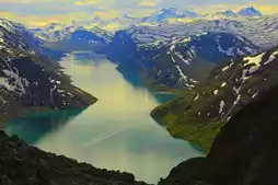 ✔️Sognefjord: Norway’s longer and deeper fjord, stretching from the coast north of Bergen to the mountainous Jotunheimen National Park and the glacier-lined Josdabrian National Park. Glacier meltwater flows into it, making the water of the fjord as green as emerald and the scenery picturesque. The depth of Sognefjord reaches more than 1,300 meters, and the peaks on both sides are more than 1,700 meters above sea level.