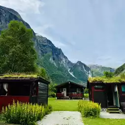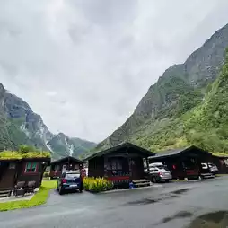A small and beautiful mini camp, only 20km away from Flam on the E16 highway. There is also a camp diagonally opposite it (Gudvangen Camping). We walked all the way from Flam along the E16 highway to find the campsite. Originally, the weather was cloudy and we still wanted to talk about it today. We had to set up a tent at night, but after passing through a tunnel it started to rain, and the rain became heavier and heavier. We arrived at Gudvangen Camping first and asked if there were any cabins. Then we asked about Vang Camping. Fortunately, there were cabins, and the camp owner also asked How big of a wooden house do we need? We adhere to the concept of economy and choose the cheapest wooden house. The Cabin wooden house only costs NOK850, which is a fairly favorable price. Although it has no bathroom or sink, it is acceptable to us. The camp owner also specifically asked us to take a look at the cabin first, and then pay if we were sure we needed it. It turns out it’s really comfortable! There is no need to set up a wet tent when it rains heavily, and there is a wooden cabin where you can sleep on the bed, a heater to keep warm, and a mini kitchen where you can cook dinner. It is really satisfying. And his shared bathroom is very close and very clean and comfortable. So it's not inconvenient.