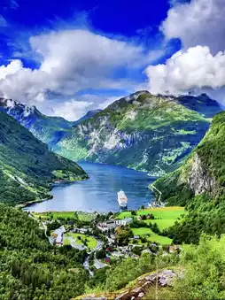 Geiranger: One of the most stunning fjord towns, recommended for cliffside sea-view cabins.