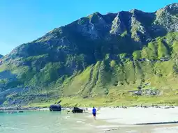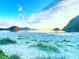#holidayitinerary Haukland Beach in Nordland is one of those places that instantly makes you stop and stare. The white sand and turquoise water look like something from a tropical island, yet you are surrounded by dramatic mountains that remind you this is the Arctic. It is a fantastic spot to relax, take a walk along the shoreline, or even go for a refreshing swim if you are brave enough for the cold water.