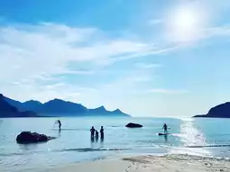 The beach has a peaceful and open feel, making it perfect for both lazy afternoons and active exploring. Many people also enjoy bringing a picnic and just enjoying the scenery while the light changes over the mountains and sea. Whether you come for photos, hiking nearby trails, or simply to breathe in the fresh coastal air, Haukland Beach is unforgettable.
