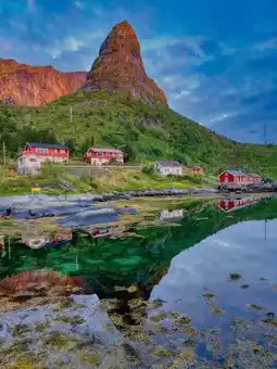 📍Visit Lofoten's "Golden Triangle" of Hamnoy, Sakrisoy, and Reine: Starting in Hamnoy, Lofoten's most famous scenic spot, take a photo of the iconic red fisherman's huts against the towering mountains from the bridge. The town is walkable, but smaller than expected and not as elaborate as other fishing villages.