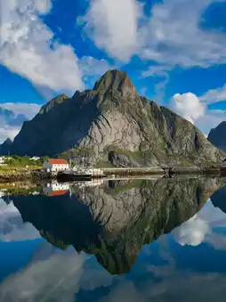📍Woke up at 5:30 a.m., already bright. The lake was calm, with perfect reflections like a mirror. We then drove to the small town of Hamony and the neighboring town of Sakrisoy to see the yellow houses, and finally to the Reine viewpoint. I personally think Reine is the most beautiful and complete of the three towns.