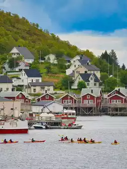 📍Stay in the unique fishing village of Nusfjord and book dinner at a restaurant on the pier. Lonely Planet hailed it as "one of Norway's most beautiful fishing villages." The village retains the famous red or yellow Rorbuer (fishermen's huts) built on stilts and jutting out to sea. This stay is highly recommended. Another benefit is that there are fewer tourists during the evening and early morning hours.