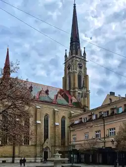 Rising elegantly in the heart of Liberty Square (Trg Slobode), the Name of Mary Church is the largest Roman Catholic church in Novi Sad and one of the city’s most stunning landmarks. Built in 1895 in Neo-Gothic style, its towering 72-meter spire dominates the skyline, making it a beloved meeting point and symbol of the city. 🏰🌆
